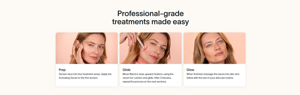 3. Move the wand in slow, upward motions, using the serum for cushion and glide. Use for three minutes per area.